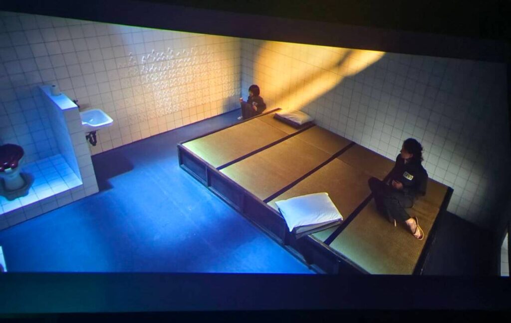 図表5:映画「731」で日本の民宿のように美しい牢屋に女性が斜め座り