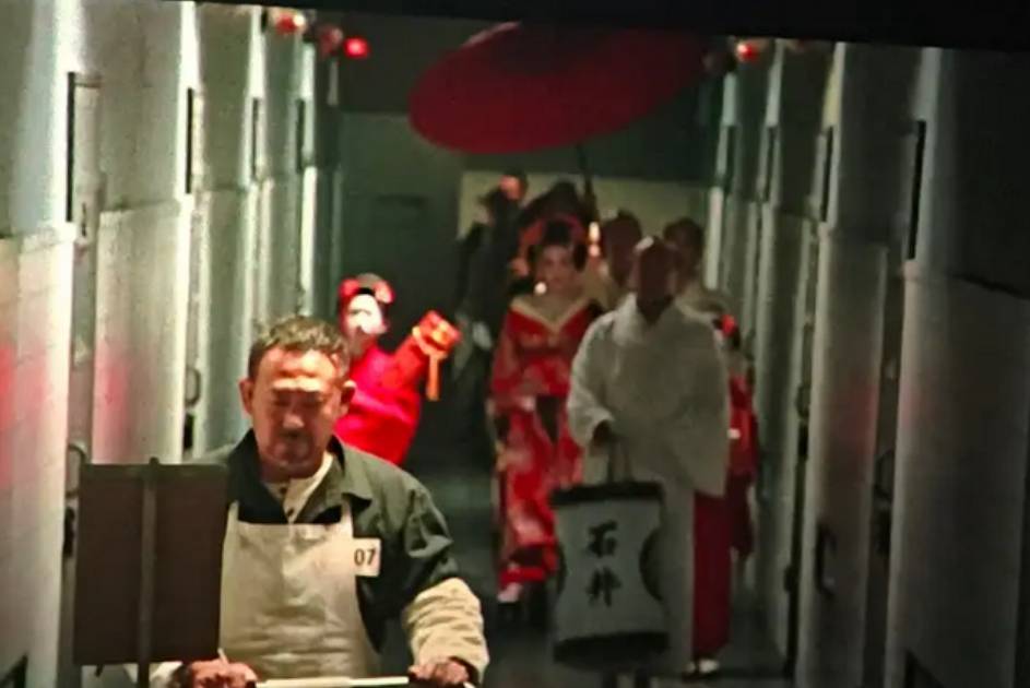 図表2:映画「731」で収容所の廊下を練り歩く花魁道中(おいらん・どうちゅう)