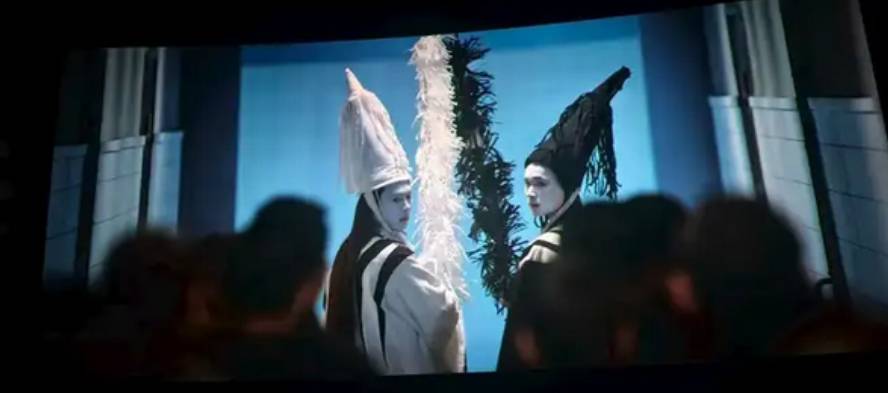 図表3にあるのは、中国で言うところの死神(無常)の黒装束と白装束のペアだが、映画の中ではわずか1秒ほどしか映らないと、中国のネットには書いてある。花魁が一瞬黒白無常になるとのこと。花魁道中が死への道であることを表現したいのかもしれないが、描くトーンがこのようにファンタスチックなので、731部隊の冷酷さとは相容れない(図表3の手前にある人影は、映画館における観客のようで、映画館で撮影したものをネットに上げたのだという経緯が見える)。
