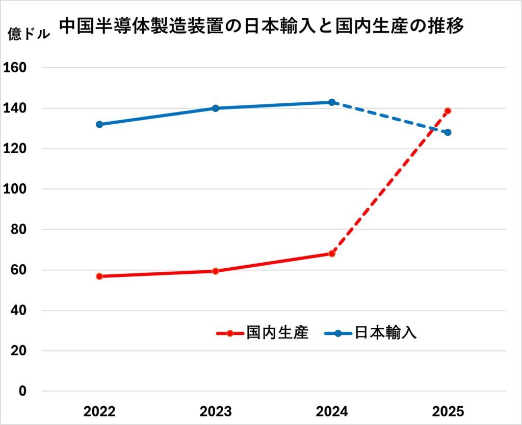 図表1:中国の半導体製造装置の日本からの輸入と中国国内生産の推移