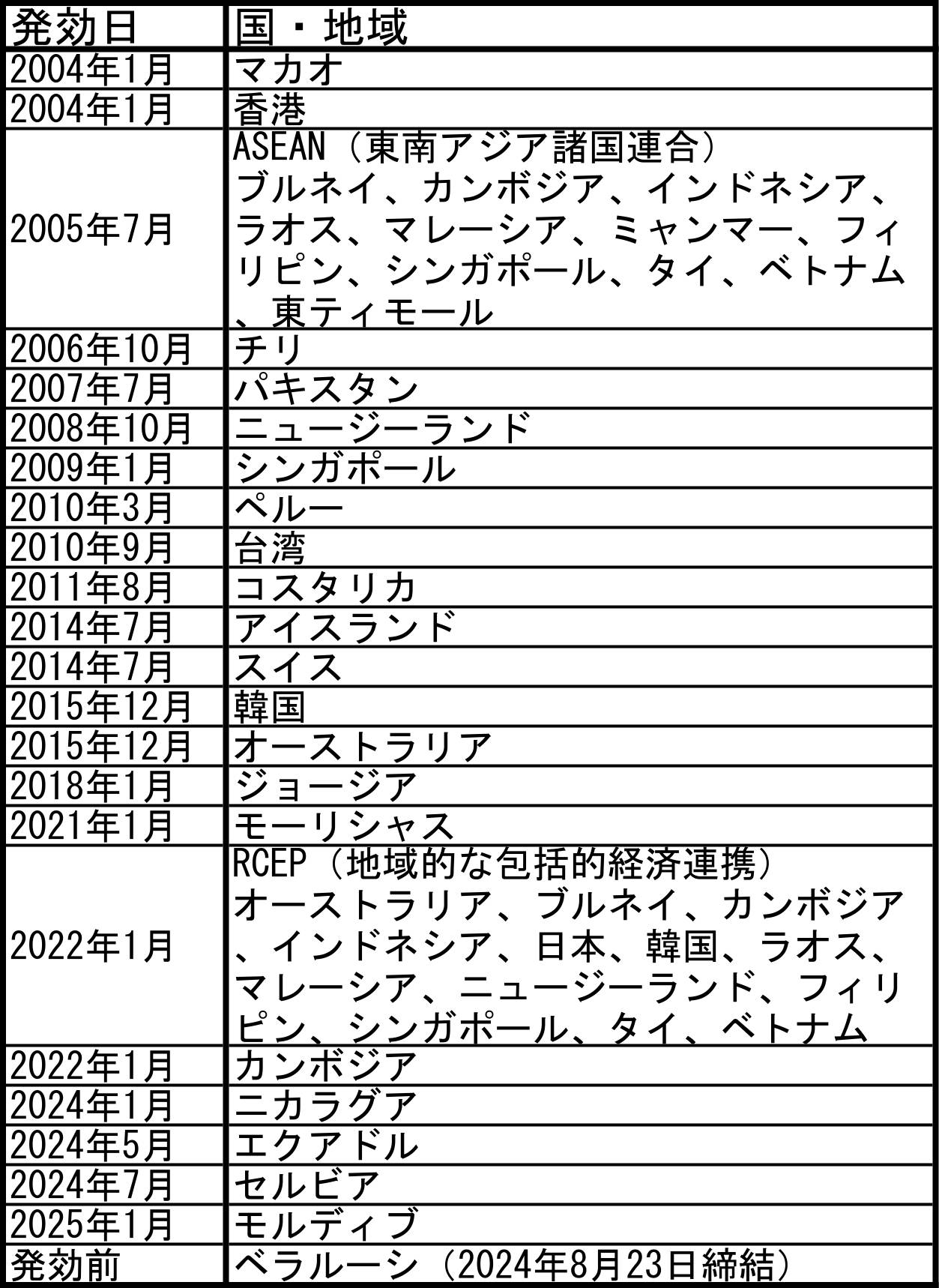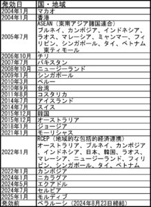 中国のFTA一覧2