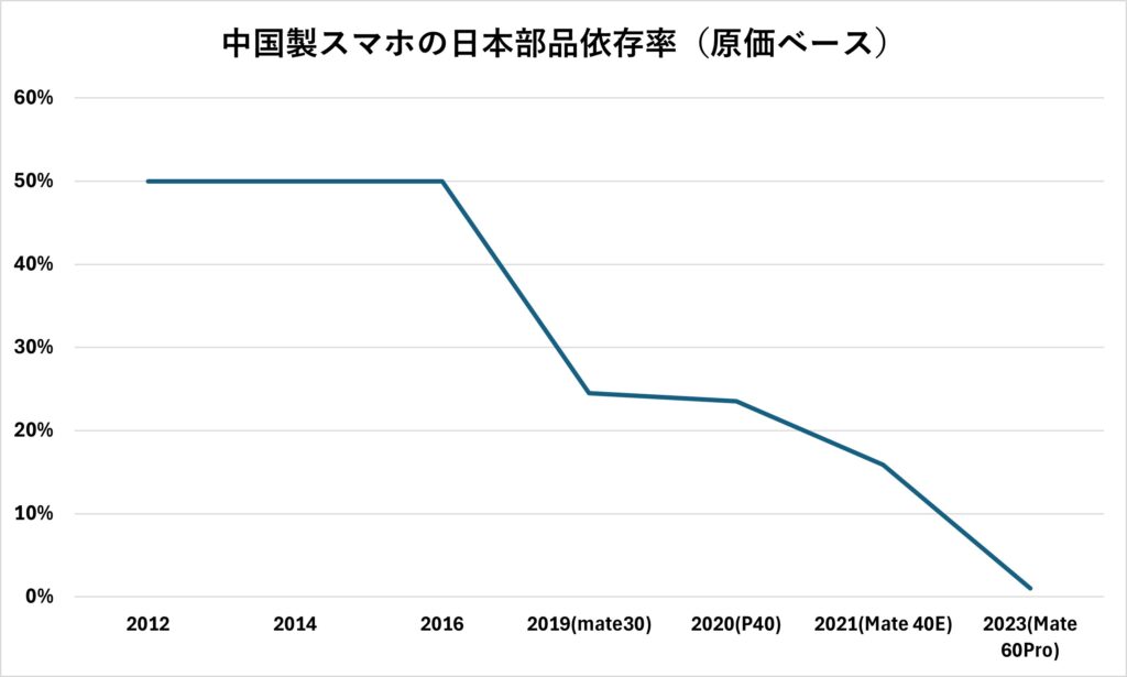特にファーウェイに関しては、トランプ1.0の時の2019年に制裁を受けてから、ファーウェイ製のスマホの部品に対する注目が高まり、ときどき分解レポートが出されて部品の割合などが明るみになってはいるが、系統だったデータがあるわけではない。