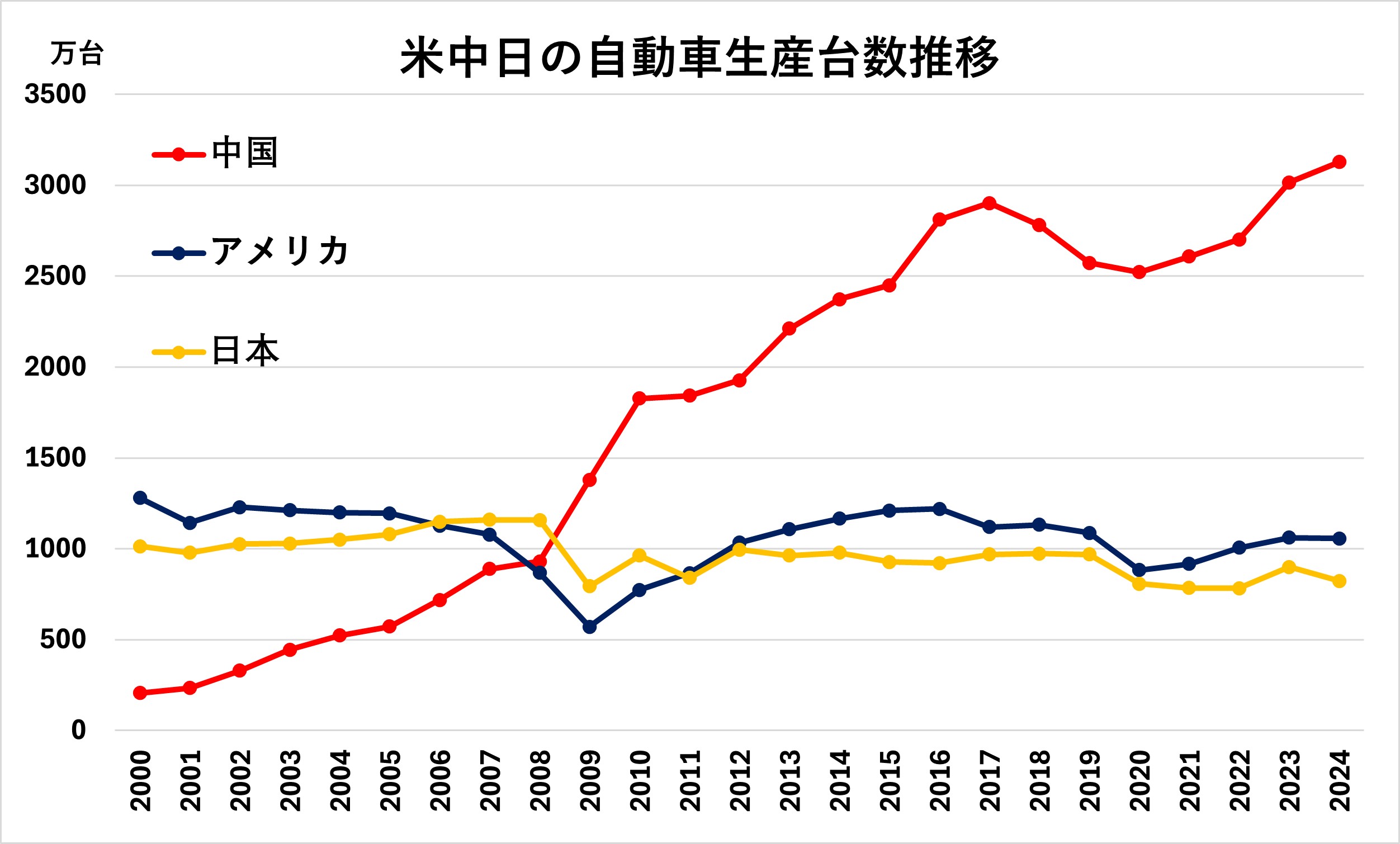 米中日の自動車生産台数推移