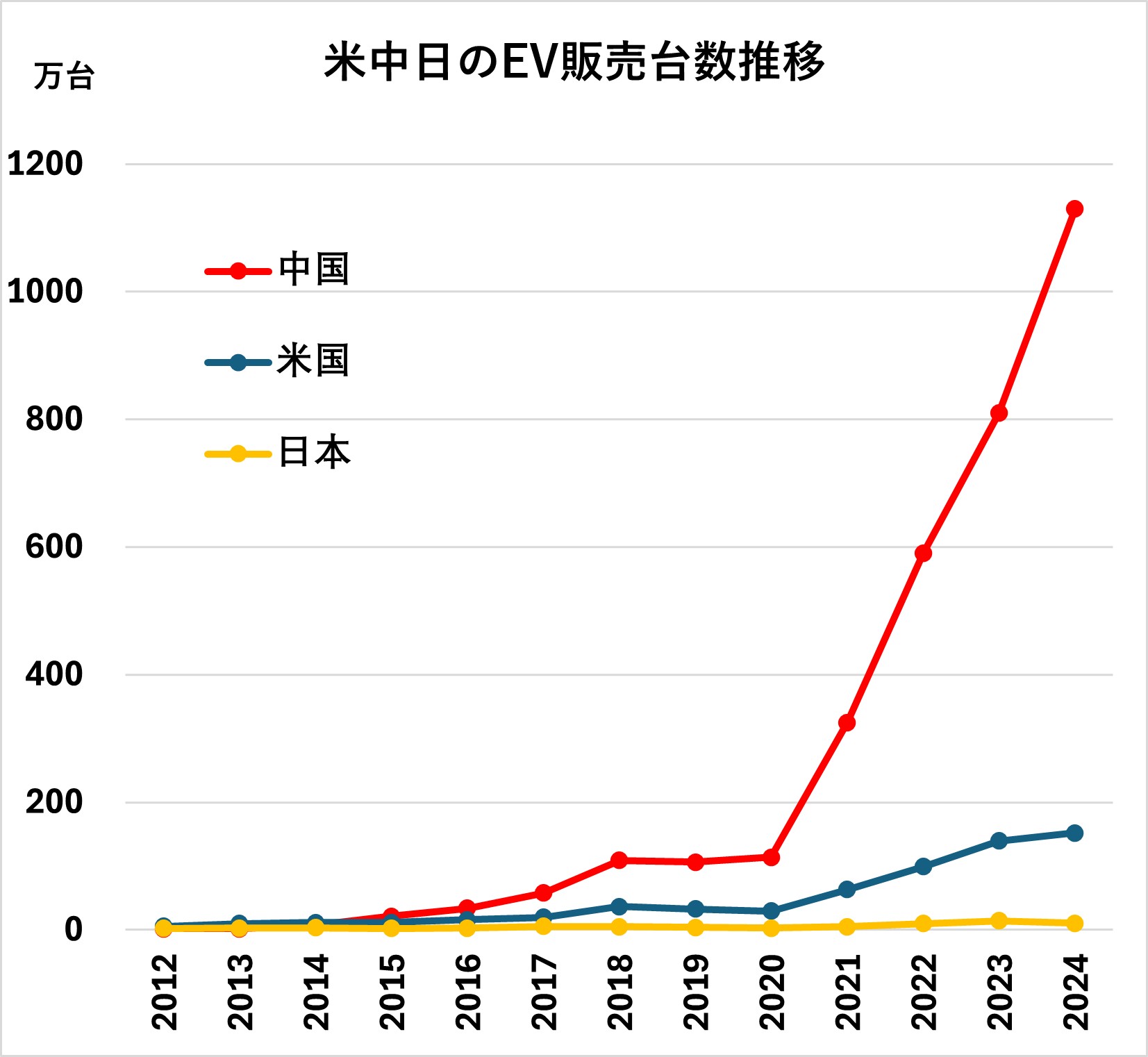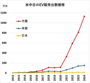 米中日のEV販売台数推移
